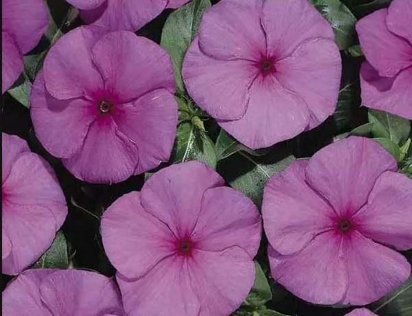 6.热浪(HeatWave)系列是长春花中开花最早的品种,有花紫红色的兰花(Orchid),花淡紫蓝色的葡萄(Grape)。