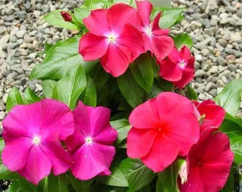 长春花都挺好养的,最好养的是老品种的粉色花。这个花量大,四季长开,只要不缺水不缺肥,光照充足就好。缺点是特别容易长高。现在有很多好的品种,颜色也多,比如鲑粉、柑橘色、木瓜色、黑莓色、树莓色、酒红色、樱桃色等等,都非常好看,而且有的有白色花心更好看。