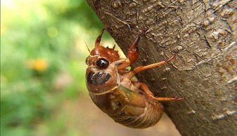 蝉,通常是三到四岁的蝉,在树枝上产卵,枯萎,落到地上,幼虫钻入土壤,靠吸取树根的汁液在地下生长。三到四年后,当它长大后,它会爬出地面,通常会爬到树上脱下幼蝉的皮。