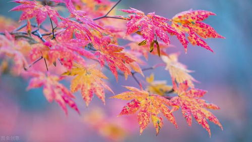1.秋天,枫叶从远处看就像一团跳动的火焰,近距离看就像金色的蝴蝶在树上翩翩起舞。