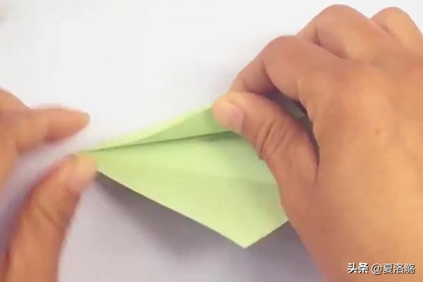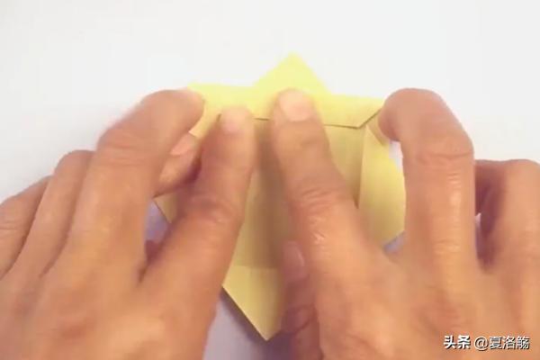 第五步:两个角对折,上边两角往后翻折,如图所示。
