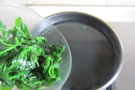 锅中放水,加入少许盐和油,水开后将新鲜田七叶放入锅中,立即关火取出。