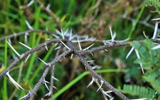 棘大多是分支的。主刺呈圆柱形,长5-15厘米,基部厚8-12毫米,末端锋利。分枝刺一般长1.5-7厘米,有时分裂成小刺,表面棕紫色,尖端红褐色,光滑或有细皱纹,坚硬不易折断,木质部黄白色,中心浅灰棕色。