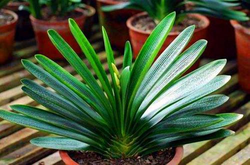 君子兰是兰花里面颜色比较鲜艳的品种了,花朵是接近于大红色的橙色,虽然颜色艳丽,但是由于花朵的形状很好看,所以也没有影响到它的美观价值。而且君子兰的叶片都是呈扇形展开的,看起来很特别。