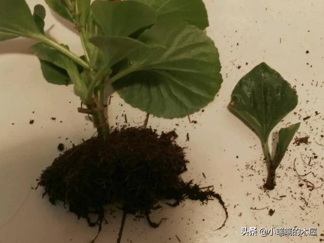海棠的枝条很脆,容易化水容易烂,扦插过程要保持卫生哦,枝条粗壮的话,成活率更高(如下图左),根系长的快,也长的好,大概20天左右就能移栽了。
