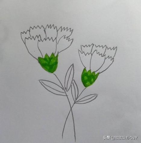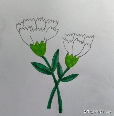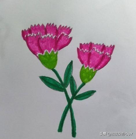 6、给康乃馨的花瓣涂色。漂亮的康乃馨画好了。